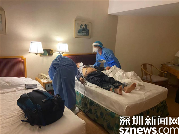 到了房间门口敲门数次无应答,驿站客服人员使用酒店“万能房卡”打开了门,值班医生迅速进入房间查看陈先生的情况,进入房间后,房间内只开了一盏床头灯,屋内安静地仿佛连一根针掉在地上都能听得一清二楚,医护人员便尝试唤醒陈先生,在进行了多次唤醒之后,陈先生才有了回应,说自己胸闷、腹胀。
