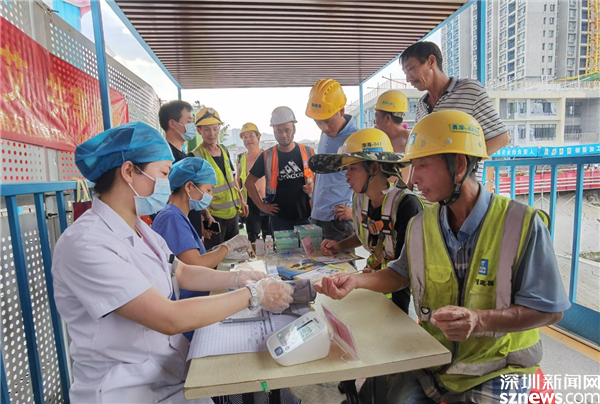 读特客户端·深圳新闻网2021年7月28日讯(记者 李慧 通讯员 赵义珍)时值盛夏,广东近日频报高温预警,多地最高气温持续超过35℃。在这样的酷热天气下,建筑工地上的工友们仍顶着烈日高温进行户外作业,他们的健康需求尤为值得我们关注。近日,中建八局一公司深圳罗湖“二线插花地”棚户区改造项目从工友实际需求出发,开展了一场“义诊义剪送清凉”活动,为参与项目建设的100余名工友送上了一份夏日关怀。