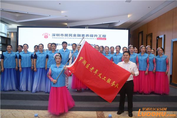 活动现场,翠竹街道办事处、东门街道办事处、桂园街道办事处、笋岗街道办事处等四家“百姓学金融”科普阵地获授牌,平安银行股份有限公司、国任财产保险股份有限公司、中信银行国际(中国)有限公司、上海浦东发展银行股份有限公司深圳分行、中国人寿财产保险股份有限公司深圳市分公司、渣打银行(中国)有限公司深圳分行、星展银行(中国)有限公司深圳分行、中国银行深圳市分行东门支行、中国农业银行深圳国贸支行、中国建设银行深圳罗湖支行、交通银行深圳罗湖支行等11家金融机构获授“金融社会服务天团”,他们将一如既往担当“金融安全守护者”,帮助市民防范各类金融类诈骗陷阱;东纵合唱团、深圳市罗湖区老年人协会作为老年义工服务队获授旗。
