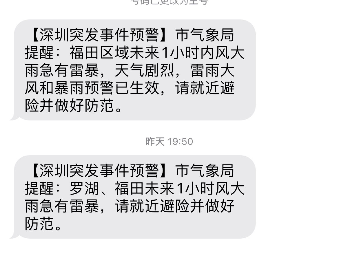 市民收到的预警短信