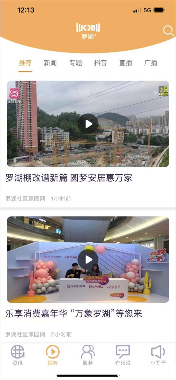 “罗湖Plus”APP内设资讯、幻灯、专题、视听、服务等栏目。