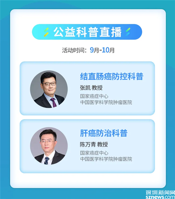 9月-10月,华大基因等机构还将通过权威专家的直播科普、线上义诊等多种形态持续开展公益。在直播科普环节,华大基因将陆续邀请国家癌症中心、中国医学科学院肿瘤医院的张凯教授和陈万青教授分别进行结直肠癌和肝癌防治的科普直播,希望医护在提升健康防护意识的同时,让“防大于治”的健康意识辐射更广泛人群,共同推动全民健康自我管理意识形成,助力实现健康中国。此外,华大基因还将联合未来医生开展专家一对一线上义诊活动,让关爱更有的放矢、落到实处。
