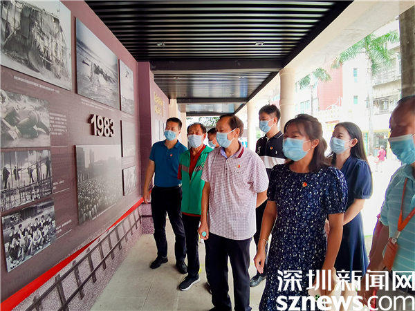 会后,吴爱华一行到红岗西村广场参观了改造后的文化长廊,在老兵们的介绍下,吴爱华深刻感受到了老兵们当年为深圳建设无私奉献的爱国之情。她表示,文化长廊真正将深圳基建工程兵这个群体的拓荒史和不怕苦、不怕累、顽强拼搏、勇于奋斗的“拓荒牛”精神展示得淋漓尽致。