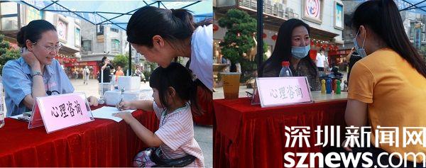 活动当天,“心灵援助驿站”的两名心理老师也来到现场,用专业、轻松的心理疏导方式为群众答疑解惑,引导群众以乐观、积极向上的心态面对生活。其中,唐玲老师的家庭格盘治疗法(一盘颜色各异的“小人偶”)吸引了不少市民围观。
