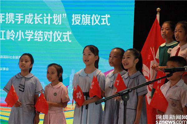 读特客户端·深圳新闻网2021年9月30日讯(记者 刘嘉敏 通讯员 黄洁)2021年9月30日上午,在庆祝中国共产党成立100周年、喜迎新中国成立72周年之际,罗湖区委统战部、罗湖团区委、罗湖区教育局、罗湖区妇联、香港国际社会服务社共同举行“手牵手向前走——深港青少年携手成长计划”授旗仪式暨罗湖区跨境学童服务中心和深圳市红岭小学结对仪式,以更实举措推进深港青少年广泛交往、全面交流、深度交融。