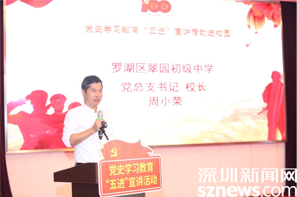 读特客户端· 深圳新闻网2021年10月26日讯(记者 郭含笑 通讯员 林宏基)10月25日,抗美援朝出国作战71周年纪念日,在这个特殊的日子里,一场鲜活的党史学习教育宣讲活动在罗湖区翠园初级中学举行。宣讲活动实况,全校2400多名师生同步网络观看。