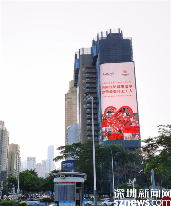 为了扩大宣传影响,营造更浓厚的关爱环卫工人氛围,10月26日至31日期间,罗湖区慈善会联动罗湖区城市管理和综合执法局、街道办事处开展“看见最美橙光,致敬环卫工人”点亮城区活动,在罗湖地标性建筑亮灯,打出“看见最美橙光,致敬环卫工人”的字样,在罗湖各大户外LED显示屏循环滚动播放《看见最美“橙”光,致敬平凡的守护》环卫工人公益宣传片和海报,欢迎广大市民驻足观看。