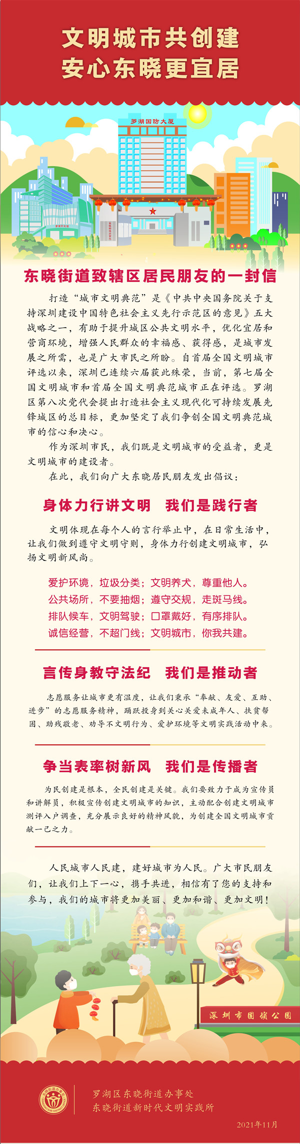 文明城市共创建,安心东晓更宜居!东晓街道致辖区居民朋友的一封信