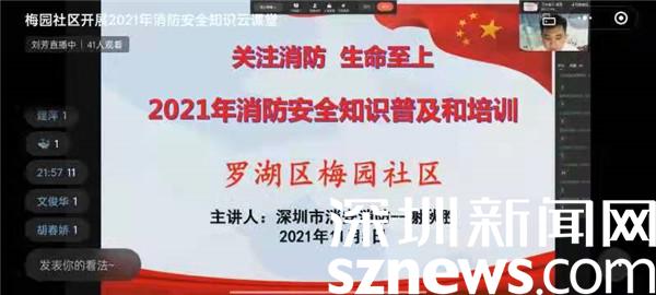 读特客户端·深圳新闻网2021年11月9日讯(记者 郭含笑 通讯员 杨永振)为进一步加强防火知识宣传工作,认识消防,学习到更多的消防知识,近日,深圳市罗湖区清水河街道梅园社区党委、深圳市东西方社工服务社驻梅园社区党群服务中心的社工联合深圳市消安防火宣传中心举办了“落实消防责任 防范安全风险”消防安全知识云课堂活动。