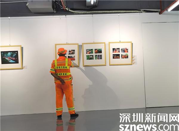 在罗湖美术馆开展的第一天,王林泉就特意前去观展,他是这次入展摄影类作品的作者之一,在与工作人员分享他摄影的作品《平凡的“战疫”英雄》时还十分感慨:“这组图是2020年2月份拍摄的,当时新冠疫情十分严峻,拍摄时我问其中一名环卫工人怕不怕?他说不怕是假的,但这些活儿也必须有人做。令我印象十分深刻。”