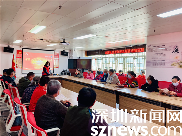 读特客户端·深圳新闻网2021年12月2日讯(记者 郭含笑 通讯员 张亮亮)为进一步宣传贯彻落实老年人养老服务相关政策,提升社区老人对养老政策的知晓度,12月1日,深圳市罗湖区清水河街道梅园社区党委、深圳市东西方社工服务社驻梅园社区党群服务中心开展了养老服务政策宣讲会,让老年群体知悉政策、快乐养老。