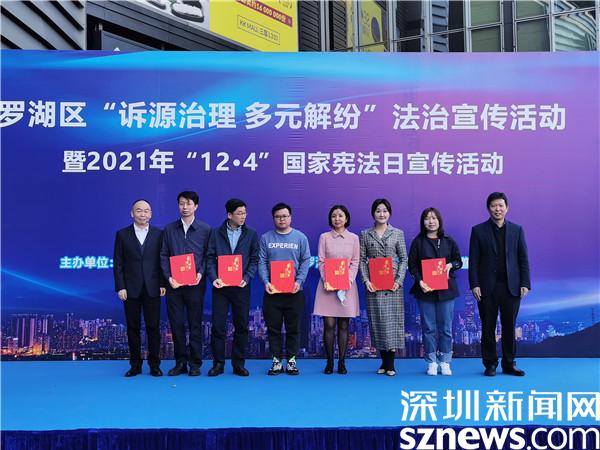 读特客户端·深圳新闻网2021年12月3日讯(记者 李慧 通讯员 康小苑)12月3日上午,罗湖在桂园街道KK-mall西门广场举行2021年“12·4”国家宪法日暨“诉源治理多元解纷”法治宣传活动。