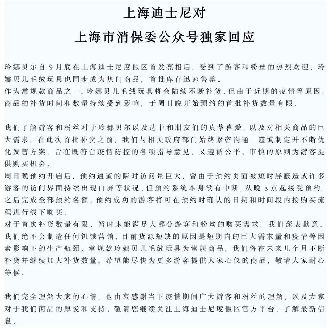 上海迪士尼回复上海市消保委称,