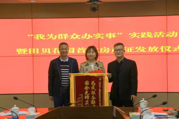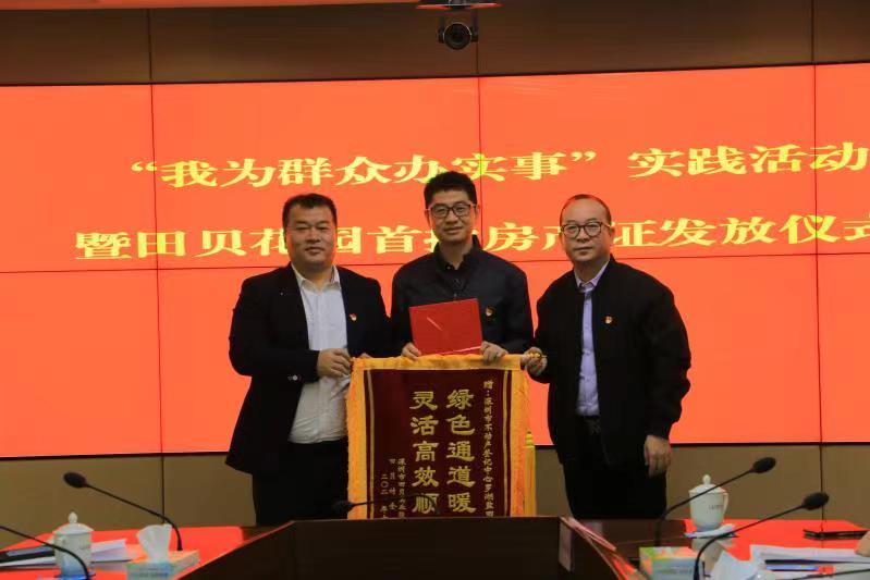 仪式当天,5名村民代表从罗湖区领导的手中接过了房产证,田贝股份合作公司向有关单位赠送锦旗表示感谢。
