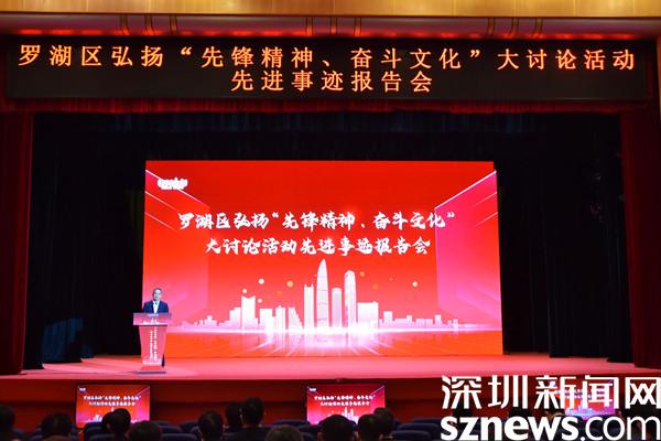 读特客户端·深圳新闻网2022年1月7日讯(记者 刘嘉敏)为进一步弘扬罗湖人的先锋精神和奋斗文化,16日下午,罗湖区弘扬“先锋精神、奋斗文化”大讨论活动先进事迹报告会召开活动以在线视频直播的方式全程直播。罗湖区委书记刘胜等区级领导班子成员出席本次活动。