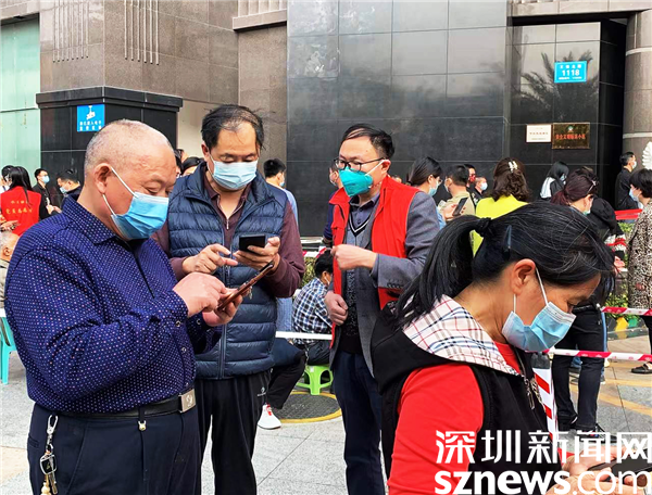 罗湖区审计局副局长陈伟健在水贝社区防疫现场指导使用“i深圳”。