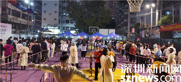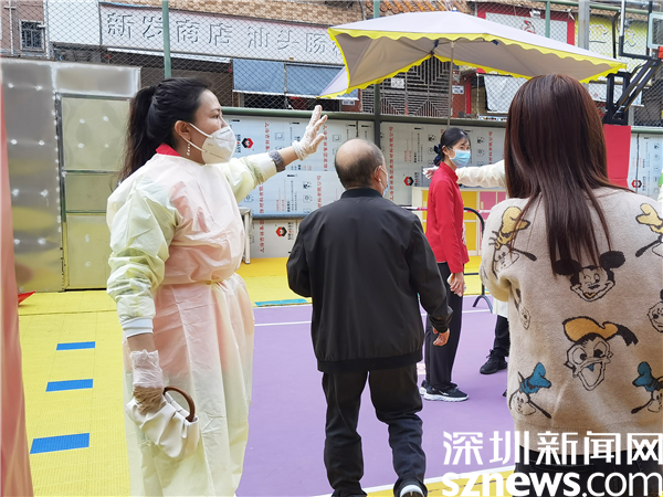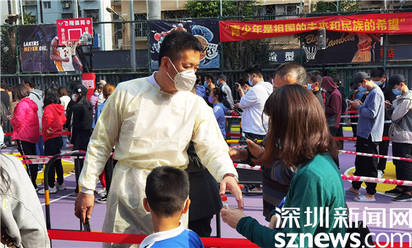 罗湖区审计局党组书记黄吉南在新村社区防疫现场指导核酸检测流程。