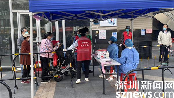 在翠竹街道金翠园核酸检测点,记者在现场看到核酸检测队伍共分成两条队伍,居民正按照地面划好的“一米线”排队,身穿红马甲的社区工作人员与医护人员正有条不紊地进行核酸采样工作,询问、登记、采样......在罗湖的街头,除了秩序井然的核酸检测,温暖的故事也在悄然发生着。