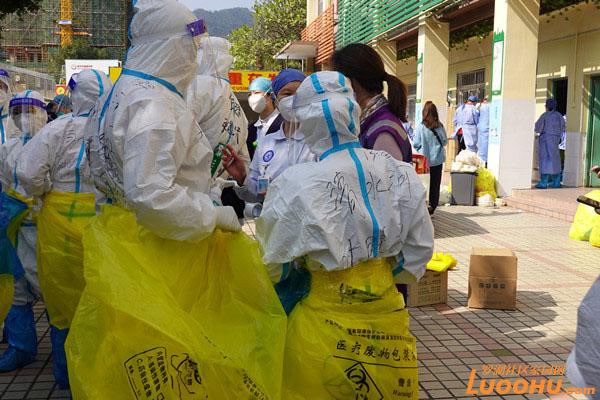 1月11日,深圳市报告4例新冠病毒阳性感染者,其中3例居住在罗湖区清水河街道草埔西社区鹤围村64栋,鹤围村被划为封控区。居住在此的居民“只进不出”,但医护人员仍需进入,开展上门核酸采样工作。一边要严控封控区进出人员,一边要确保核酸采样工作有序开展,于是,罗湖的“白衣天使”们纷纷成为身兼多职的“工具人”。