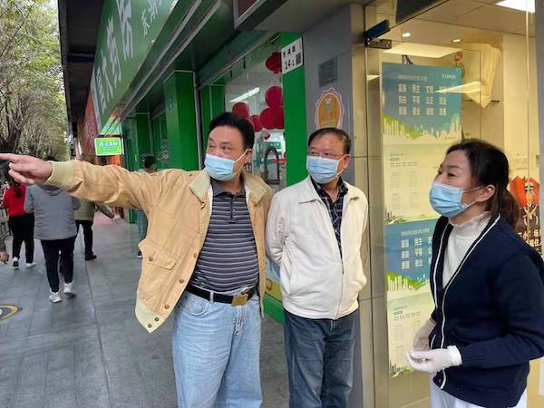 随后,文促会一行来到了东湖街道大望社区。在社区核酸检测现场,大望社区党委书记高桂秀正在指挥现场工作;大望实业公司董事长何雨聪和大望社区副书记李雪康两人都面带倦容,明显近期睡眠严重不足。据了解,高桂秀近期一直绑着护腰垫片,带病坚持抗疫。