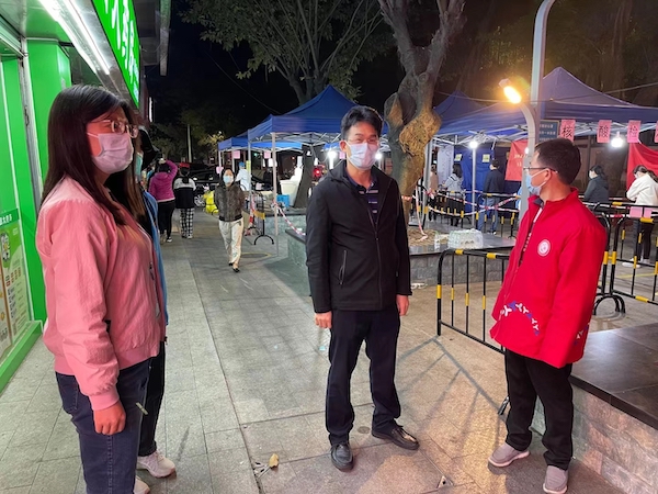 读特客户端·深圳新闻网2022年1月18日讯(见习记者 覃钰清 通讯员 杨协英)近日,深圳市文促会执行秘书长伍春明博士,秘书长杨协英等文促会专家在夜间来到罗湖区东湖街道防疫现场考察。现场,东湖街道党工委书记程时菊、办事处主任刘慧坚等一众街道领导干部正连夜在现场指挥,对东湖街道防疫工作做出了周密的部署与科学的计划。