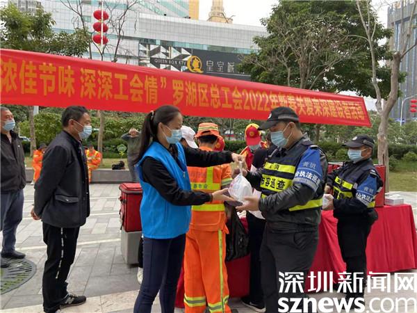 读特客户端·深圳新闻网2022年1月25日讯(记者 刘嘉敏 通讯员 王惊鸿)1月25日,罗湖区总工会组织开展“温情年·浓浓佳节味 深深工会情”新春关爱主题活动。在中国传统节日小年的当天,为快递员、外卖配送员、环卫工人、建筑工人、执勤交警、坚守岗位的普通职工等户外劳动者送上热腾腾的八宝粥和饺子,以此拉开了“罗湖工会陪你留深过大年”2022年关爱来深建设者新春系列活动的帷幕。