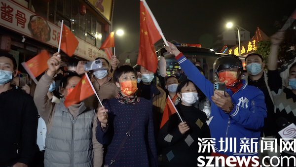 随着“解封”时刻的临近,现场气氛高涨,封控区内“深圳加油”的口号与封控区外“《我和我的祖国》大合唱”愈发嘹亮。