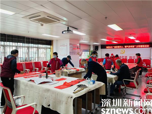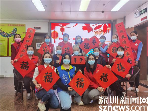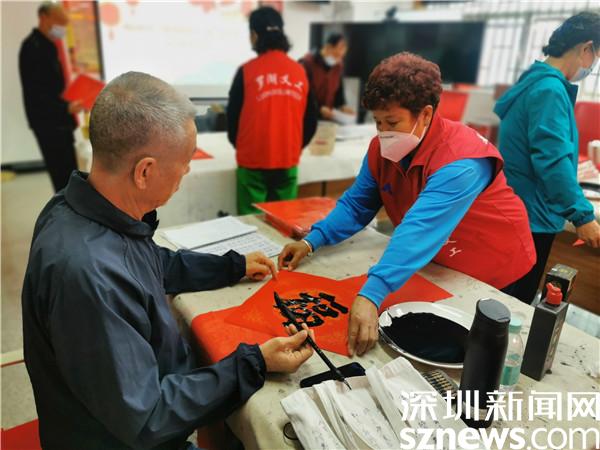 读特客户端·深圳新闻网2022年1月26日讯(记者 郭含笑 通讯员 李珍凤)“无联不成春,有联春更浓”。春节临近,为弘扬和传承中华优秀传统文化,1月26日,深圳市罗湖区清水河街道梅园社区党委、深圳市东西方社工服务社驻梅园社区党群服务中心在梅园社区新时代文明实践站开展了送春联活动,邀请社区4位书法爱好者现场为居民写春联、送祝福。