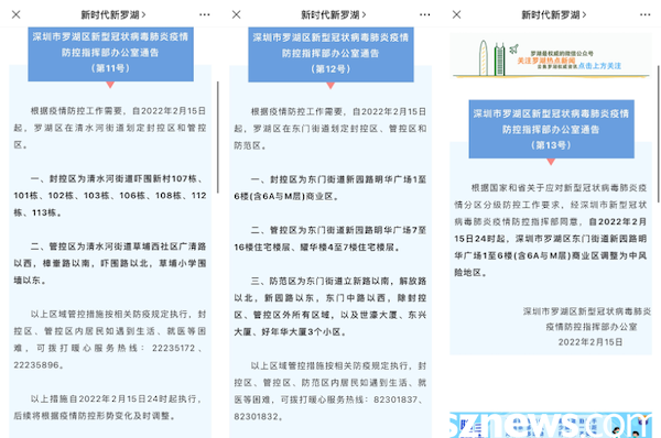 读特客户端·深圳新闻网2022年2月16日讯(记者 覃钰清 谢秋平 )2月16日凌晨,深圳市罗湖区新冠肺炎疫情防控指挥部连发三条通告,在罗湖区清水河街道、东门街道划定多个封控区、管控区。并将东门街道新园路明华广场1至6楼(含6A与M层)商业区调整为中风险地区。中午,记者分别前往东门街道与清水河街道现场探访“战疫”一线。
