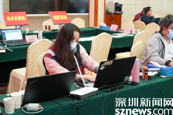 罗湖区流调前线指挥部办公点位于艺嘉国际大酒店,进入指挥部,记者就看到一片忙碌的景象,每个工作人员面前一台笔记本电脑,键盘敲击、接打电话的声音不断传来。