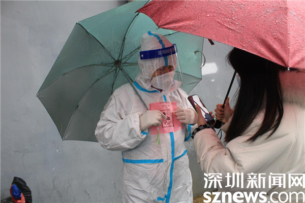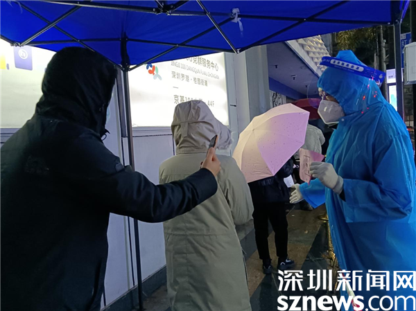 读特客户端·深圳新闻网2022年2月24日讯(记者 刘嘉敏 通讯员 杨纪欧)虽然这几天的冷风冷雨一直不停,气氛低至6度,但深圳市罗湖区桂园街道老围社区设在各处的核酸检测点一直在有序进行着。人们打着雨伞排队,社区工作人员和志愿者高效地引导,让等候的人快速地采样,协助不会操作的人出示粤核酸码。工作人员的手脚都冻僵了,但没有人退缩,用自己的“冻”起来,守护着深圳人的绿码,捍卫着社区的平安。