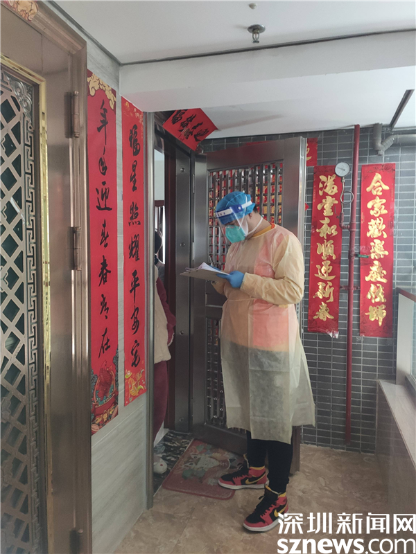 自今年“0107”疫情发生以来,洪天飞就成了休息“绝缘体”——除完成南粤家政的日常工作外,其余时间都当起了志愿者,积极参与社区疫情防控工作,甚至春节期间也主动放弃假期、放弃与家人团聚时光,把团聚转移到了防疫一线,和社区工作人员一起起早贪黑,一起经历风雨寒冻,一起应急出动,从核酸采样点布置场地、维持现场秩序、引导扫码到上门“扫楼”收集住户信息等工作中,处处可见他的身影。