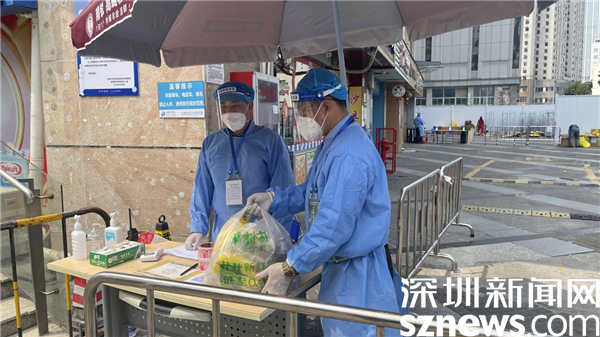 3月5日下午,深圳新闻网记者来到风格名苑。只见身穿防护服的“白墩墩”“蓝墩墩”正来来往往地在门口忙碌着,偶尔有“骑士”将外卖放在小区入口的货架上便离开。桂园街道应急办网格部部长李志勇正耐心回答着不断响起的电话。