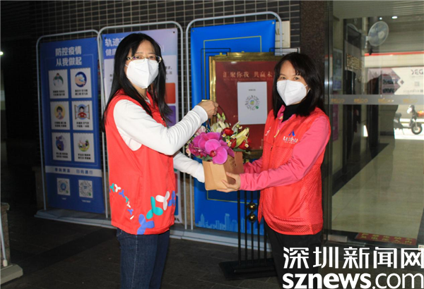 读特客户端·深圳新闻网2022年3月9日讯(记者 刘嘉敏 通讯员 杨纪欧)3月8日,是国际妇女节,所有坚守在罗湖区桂园街道老围社区抗疫一线的女性社区工作者、下沉人员、志愿者和医务人员都收到了一个精美的小花篮,花篮里百合、玫瑰、兰花等悠然绽放,芳香四溢,鼓舞了满员士气。