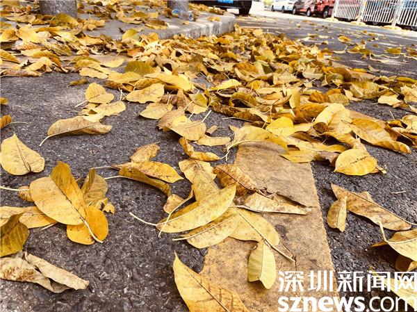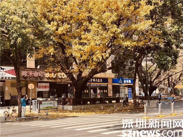 罗湖区美术馆门前,树叶正飘落,行人三三俩俩,颇有“半城春色半城秋”之感。