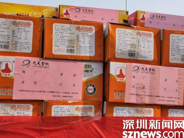 读特客户端·深圳新闻网2022年3月18日讯(记者 覃钰清 通讯员 张勇)“深百协作同发展,罗湖隆林一家亲。”3月17日上午,满载着高山大米、黑猪肉丸、沃柑等优质农特产品的大卡车抵达罗湖,这些“暖心农特产品”来自于相隔千里之外的广西百色隆林各族自治县,为奋战在罗湖抗疫一线的医护人员、社区工作人员等送上慰问,加油打气!
