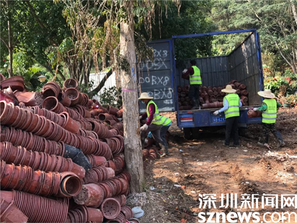 分拣后的花盆回收运输