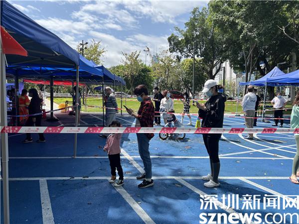 读特客户端·深圳新闻网2022年3月30日讯(记者 刘嘉敏)“我想请问老人家有没有绿色通道?”“我没有智能手机,我跟儿子一起用同一部手机登记可以吗?”……3月30上午,在罗湖区初心公园核酸采样点,点长刘冬城正在为采样中遇到困难的群众答疑解惑,他说,“自罗湖发布了‘一天一检’的通知后,主动前来开展核酸检测的居民比以往相对要多。”