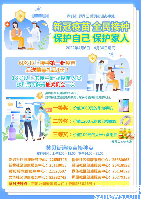 同时,积极动员辖区爱心企业参与支持,通过发放爱心物资、抽奖等方式提高居民接种积极性,推动疫苗接种扩面提速。据了解,为鼓励辖区居民接种,该街道推出“凡18岁以上未接种疫苗的居民,到辖区内社康接种疫苗后,均可参与幸运抽奖一次(一等奖为价值3000元的华为手机1台)”的奖励措施,以此动员居民参与。