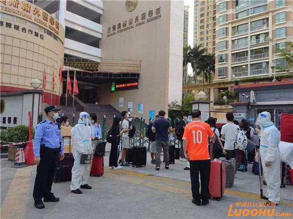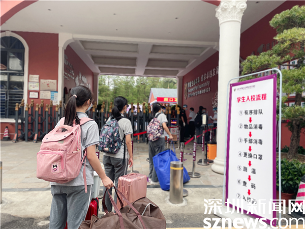 上午7点左右,罗湖区诺思外语实验学校大门外,带着浓浓返校期盼的学生和家长们早已提前等候在学校门口,左手书包右手行李,自觉列队等待核验,开启了初三学子春季学期返校的序幕。