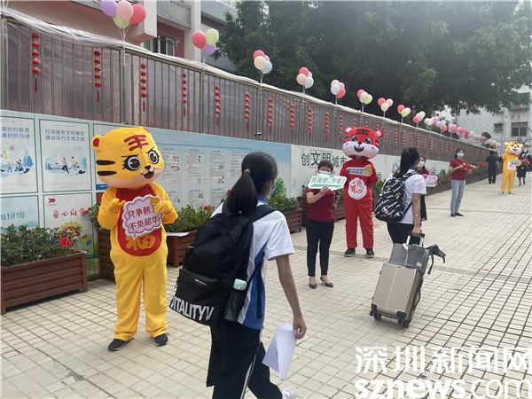 这是翠园东晓中学为欢迎学生返校,举行的温馨复学仪式,还为孩子们派发了暖心防疫用品。“回家的心情好到爆表”“奋斗冲刺、金榜题名”……不少孩子们纷纷举着励志牌与“小老虎”合照,宣告新学年的奋斗目标。