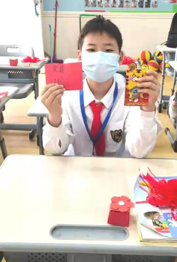 502班的返校仪式“爱意浓浓”。红色拉花让每个孩子都喜气洋洋;桌上班主任老师亲手折的小礼盒和各式各样的糖果让孩子们甜蜜加倍;还有暖心“红包”,里面有老师们一笔一画书写给孩子们的惊喜,更是寄托了无限的关心与激励。