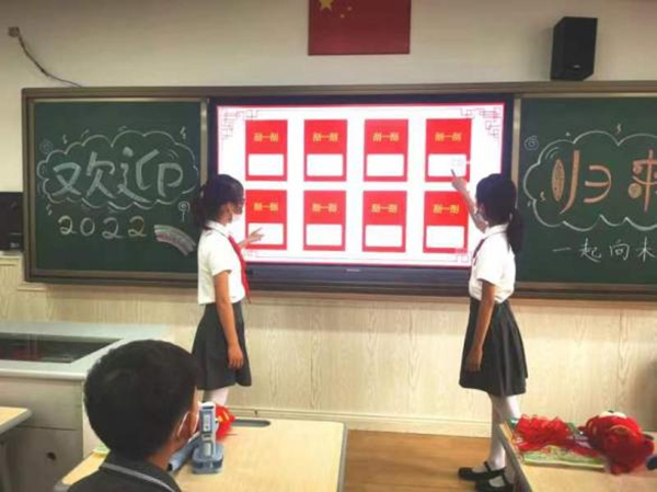 401班返校仪式“创意刮刮乐”让同学们体验到了班级入座新流程。通过刮刮乐刮出线上课程各科所学知识的题目,然后靠实力答题获得返校“旺旺小礼品”。孩子们惊喜刮奖,自信答题,轻松愉快地从线上课程过渡到线下课程的学习。