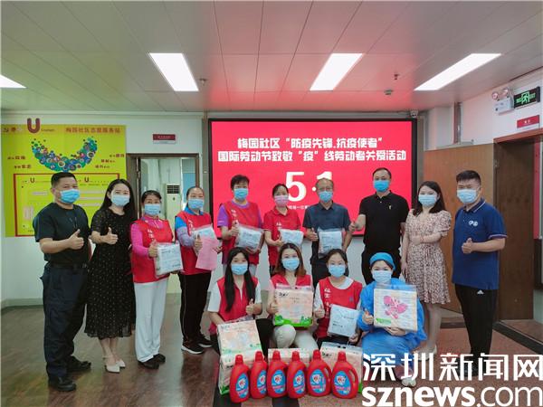 读特客户端·深圳新闻网2022年4月30日讯(记者 郭含笑 通讯员 洪智广/文 杨永振/图)4月29日上午,深圳市罗湖区清水河街道梅园社区党委、梅园社区工作站联合梅园社区党群服务中心在梅园社区新时代文明实践站开展“防疫先锋.抗疫使者”国际劳动节致敬“疫”线劳动者关爱活动,参加活动的有医护人员、防疫工作者、一线民警、志愿者等各岗位代表。