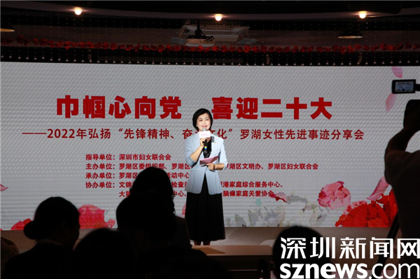 读特客户端·深圳新闻网2022年5月7日讯(记者 郭含笑 通讯员 陈伟 敖凌子)5月7日下午,“汇聚巾帼新力量踔厉奋进新征程”——弘扬“先锋精神、奋斗文化”罗湖女性先进事迹分享会在罗湖区妇女儿童活动中心举办。 此次分享会是由深圳市妇女联合会指导,罗湖区委组织部、罗湖区委统战部、罗湖区文明办、罗湖区妇女联合会联合主办,是罗湖区妇联开展的“巾帼心向党、喜迎二十大”群众性主题宣传教育系列活动之一。活动旨在发挥先进女性模范的示范引领作用,发挥妇联组织宣传表彰的三八红旗手、巾帼建功标兵等先进典型的激励带动作用,推动形成崇尚榜样、学习模范、争当先进的良好社会风尚。 深圳市妇联党组成员、副主席彭迎九,罗湖区委组织部、区委宣传部、区委统战部、区妇联、文锦渡边防检查站等单位相关领导出席活动。各街道妇联主席、“巾帼建功评优评先”获奖代表、罗湖区新兴领域妇联组织代表等参加此次分享会。 10间“喜阅屋”让万余名孩子受益 分享会上,来自深港两地的5位先进女性代表共同分享了成长历程,讲述了她们的奋斗故事。 “一项‘她计划’,成全一件事;一间‘喜阅屋’,成全一群人”。文锦渡出入境边防检查站党委书记、站长,二级警务专员、二级警监,罗湖区妇联执委,全国特级优秀人民警察吕平分享了她的“益”路奋斗历程。她带领团队打造出专为乡村儿童设计的阅读室——“喜阅屋”。六年来,吕平带领团队在四省七地建设的10间“喜阅屋”让超过万余名孩子受益。在日常工作中,文锦渡边检站的女警也积极服务群众、服务社区,这种责任自觉形成的先锋精神,给这支队伍带来可喜的变化,先后获得“全国巾帼文明岗”“全国五一巾帼标兵岗”等多项荣誉。 成为罗湖区首批“四新”领域组织妇联之一 “我的不幸却成就了我的所幸。”罗湖区融爱脑瘫家庭关爱协会会长袁艳玲也上台分享了她的故事。她不仅是罗湖区融爱妈妈妇联主席,还是一位脑瘫儿童的母亲。得知孩子患有此病,她曾一度有放弃生命的想法和行为,是“阳光妈妈”学堂让她重燃对生活的希望,并于2016年联合其他脑瘫患者的家属共同发起注册首个脑瘫患者家长组织——深圳市罗湖区融爱脑瘫家庭关爱协会。2020年又成立了罗湖区融爱妈妈妇女联合会,成为罗湖区首批“四新”领域组织妇联之一。 随后,由脑瘫儿童组成的小青蛙乐团现场带来非洲鼓表演《听我说谢谢你》,在表演结束后孩子们一起送花给身后的母亲,那一声“妈妈您辛苦了”让现场不少观众红了眼眶。 服务深港两地跨境家庭十年 在深港两地做社工是什么体验?社会组织公益人士、深港服务人员代表倪怡洁为大家分享她的十年深港社工之旅。从2012年由香港国际社派驻到深圳开展跨境服务开始,她以罗湖为起点,服务深港两地的跨境家庭已逾十年。 这十年的社工之旅让她坚信,罗湖的温暖会让在这里安家落户的港人家庭爱深圳爱香港,成为大湾区发展的强大动力。在分享后,倪怡洁与罗湖区跨境学童合唱团共同深情合唱《我和我的祖国》,感谢祖国母亲的培育。 求学归来书写与罗湖的故事 深圳鸿烨盈泰资产管理有限公司负责人邓梦盈也带来了她与罗湖的精彩故事。曾海外留学的她,坚定放弃海外的高薪工作,回到罗湖自己创业。突如其来的疫情让创业初期的邓梦盈陷入了深深的不安,但办法总比困难多。邓梦盈迅速抓住互联网渠道,开展线上销售,扩大宣传,同时做起视频号,扩大公司知名度,业务蒸蒸日上。同时,她也承担着区人大代表这个光荣的使命,多次提出议案为群众谋求福利。 母女时空对话将现场气氛推至高潮 将现场氛围推向高潮的,是大望小学六年级的杨羽萱同学为妈妈创作的一首歌曲和母女的时空对话。杨羽萱的妈妈吴莲英是大望社区党群服务中心的社工。2020年新冠肺炎疫情暴发,吴莲英大年初二就回到社区全身心投入防疫工作。“加班到深夜回家的妈妈、遇到突发情况和险情从未退缩的妈妈、在危机干预现场遭受危险的妈妈......”一一记在了女儿杨羽萱的心里。 在五位先进女性分享结束后,罗湖区妇联党组成员、副主席田林为她们颁发了荣誉状。罗湖区直机关工委书记、区委组织部二级调研员汪家萍,区委统战部副部长、区侨务局局长杜阳分别为深圳市罗湖区会挑直播广场妇女联合会、深圳市罗湖区海外留学归国人员协会妇女联合会代表授牌,持续推进妇女工作向新阶层、新领域扩展。 紧接着,分享会上举行了“巾帼建功评优评先”获奖代表授牌仪式。深圳市妇联党组成员、副主席彭迎九为2021年广东省三八红旗集体、广东省巾帼文明岗获奖单位授牌。罗湖区委宣传部副部长刘挺凯为2021年市级巾帼文明岗、巾帼文明岗创岗先进个人等获奖代表授牌表彰。 彭迎九表示,今年,深圳市妇联将在全市开展“巾帼心向党、喜迎二十大”群众性主题宣传教育活动,主要有“新思想在我身边”学习活动、“幸福在我身边”展示活动、“榜样在我身边”宣传活动、“温暖在我身边”实践活动四大板块。此次女性先进事迹分享会,就是“榜样在我身边”的生动演绎。 据了解,罗湖区从去年11月启动弘扬“先锋精神、奋斗文化”大讨论活动,以此汇聚全区智慧力量、鼓舞广大党员干部,深刻把握罗湖发展的新使命、新目标,保持强烈的责任感、使命感,在