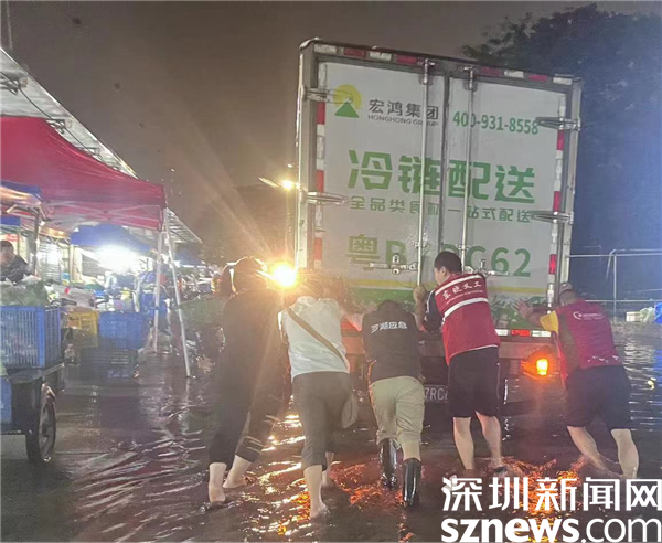 在兰花社区丰湖大厦果蔬集散市场,有三辆农产品运输车抛锚,在接到求助信息后,兰花社区党委副书记邹添文和其它值班同事立即赶往现场,冒雨将车辆推离市场。“从5月11日上午9点,到5月12日上午9点,我一直在岗。我们对社区进行了全面排查,确保暴雨期间居民的生命和财产安全。”邹添文在接受记者采访时表示,“凌晨三点,我们还在市场处理抛锚车辆,那时候也是雨势最为迅猛的时候,虽然大家都变成了落汤鸡,身上又冷又腻特别难受,但是看到车辆成功驶离,还是很有成就感的。”