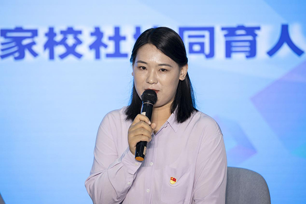 社区代表大望社区党委书记高桂秀向大家分享了她致力于“家校社协同育人”的初心以及大望社区的相关探索,大望社区孩子及其家庭人数占社区的70%以上,且大部分无异于“留守未成年人”和困境未成年人。大望社区抓住辖区内家庭教育的痛点与堵点,通过贯彻社区“大党委”理念、建立定期联系的联席工作例会制度、充分利用辖区优势资源,成立家长党员志愿者服务队等多措并举,多方联动,形成家庭主体、学校主导、社区参与的育人网络。以社区党委为突破点,融合一体,聚合成衔接有效、资源共享、活动共商、项目共育、互促共荣的动态双向互动协同育人共同体,构建大望特色的‘家校社’协同育人的新模式,交出一份人民满意的答卷。
