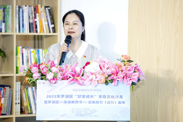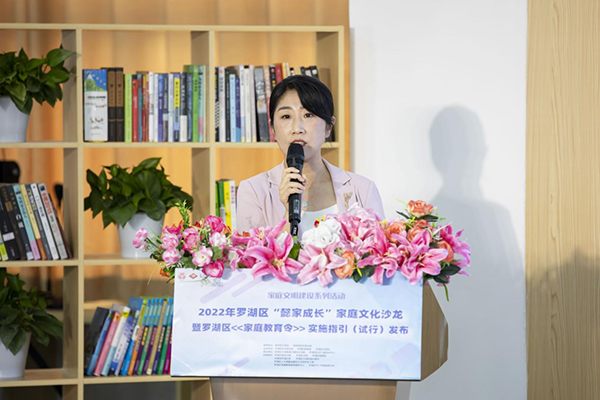 读特客户端·深圳新闻网2022年05月16日讯(记者 吴艳 通讯员 敖凌子)5月15日下午,由深圳市文明办、深圳市妇女联合会指导,罗湖区妇女联合会、罗湖区教育局、罗湖区文明办联合主办的2022年“懿家成长”家庭文化沙龙暨罗湖区《家庭教育令》实施指引(试行)发布活动在大望社区党群服务中心成功举办。