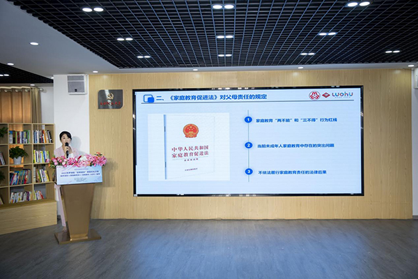 沙龙伊始,罗湖区人民法院民一庭(家事庭)副庭长栾媛带来《〈家庭教育促进法〉解读》的专题讲座,阐明《家庭教育促进法》的意义,明晰家长“两不得”“三不能”的行为红线,并针对当下大多家庭教育存在生而不养、养而不教等突出问题进行剖析,结合工作历程中生动形象的案例,让许多家长明确了法律的要求。同时,栾法官也为家长们提出了实用科学的家庭教育内容和方法,也对家校社协同育人机制发表了自己的想法。