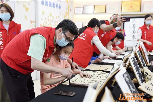 在“星星学堂”助教课堂上,张楠偶尔还当上“小老师”,教孩子们书法。